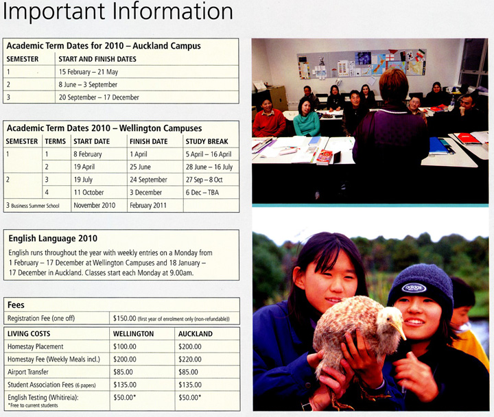 Whitireia Community Polytechnic 維特利亞理工學院 2010 開課日期及課程費用